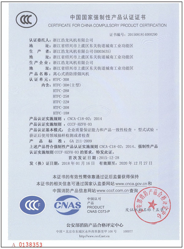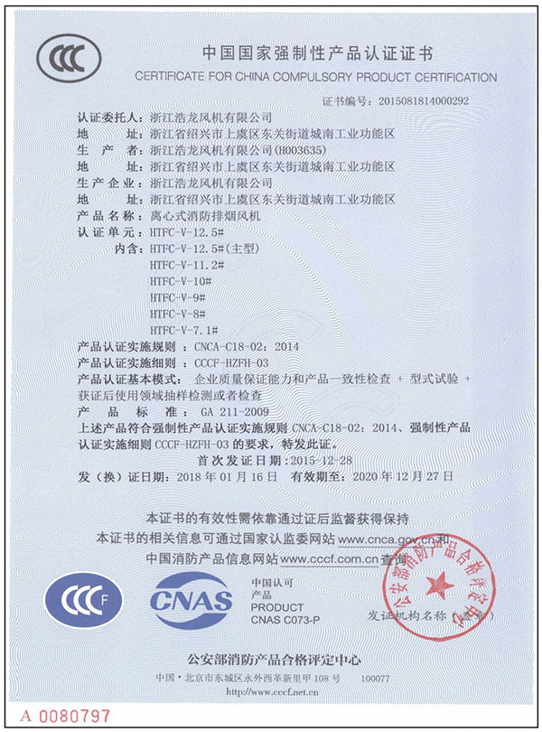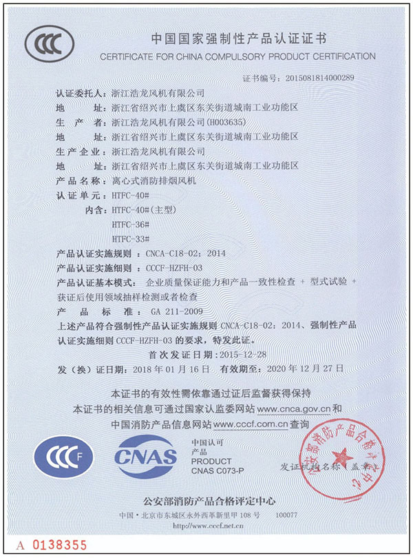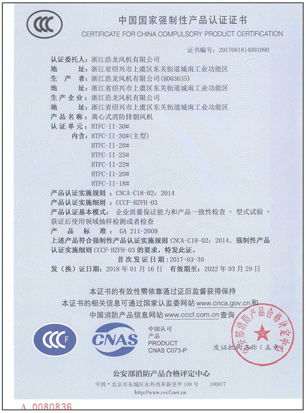 浙江浩龍風機有限公司坐落于“中國風機之鄉”浙江省上虞區東關街道城南工業功能區,距上三高速入口.104國道1000米,處于上虞交通中心區域,地理位置十分優越。企業注冊資金5700萬元人民幣,生產用地72畝,是一家專業研發、設計、制造風機、屋頂風機、隧道風機、防火排煙閥門、消防3C認證風機、排煙閥、防火閥、消聲器、靜壓箱、控制系統等暖通成套設備并且提供專業售后服務的行業骨干企業,3C風機廠家。具有年產五萬套各類風機,十萬套防火,消聲設備的能力。